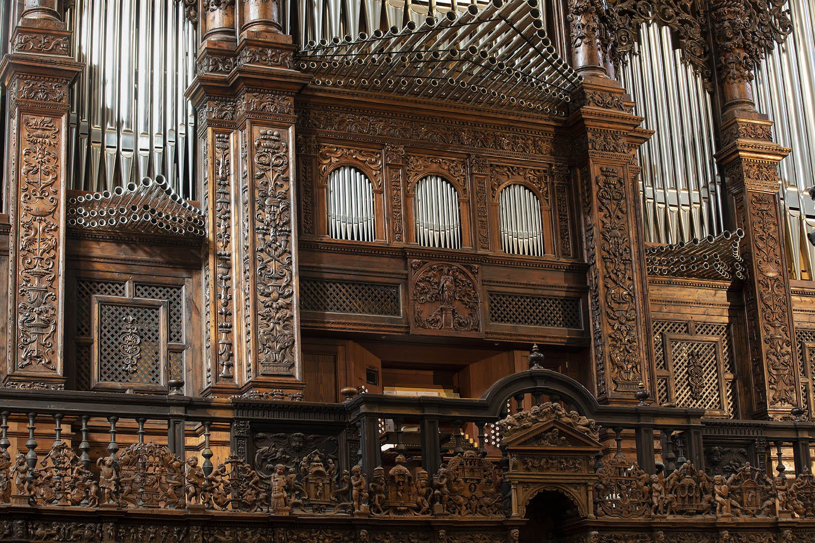 El cimacio tiene forma piramidal, y está rematado por una cruz de hierro que actualmente ha perdido.